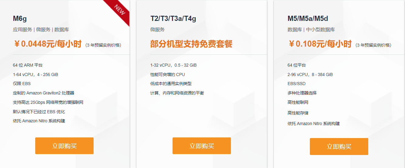 三、亚马逊AWS云服务器常规套餐1、亚马逊AWS云服务器通用型套餐